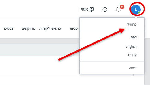 נכנסים למערכת ולוחצים על החץ שליד האימייל, בפינה עליונה משמאל ולאחר מכן על "פרופיל"